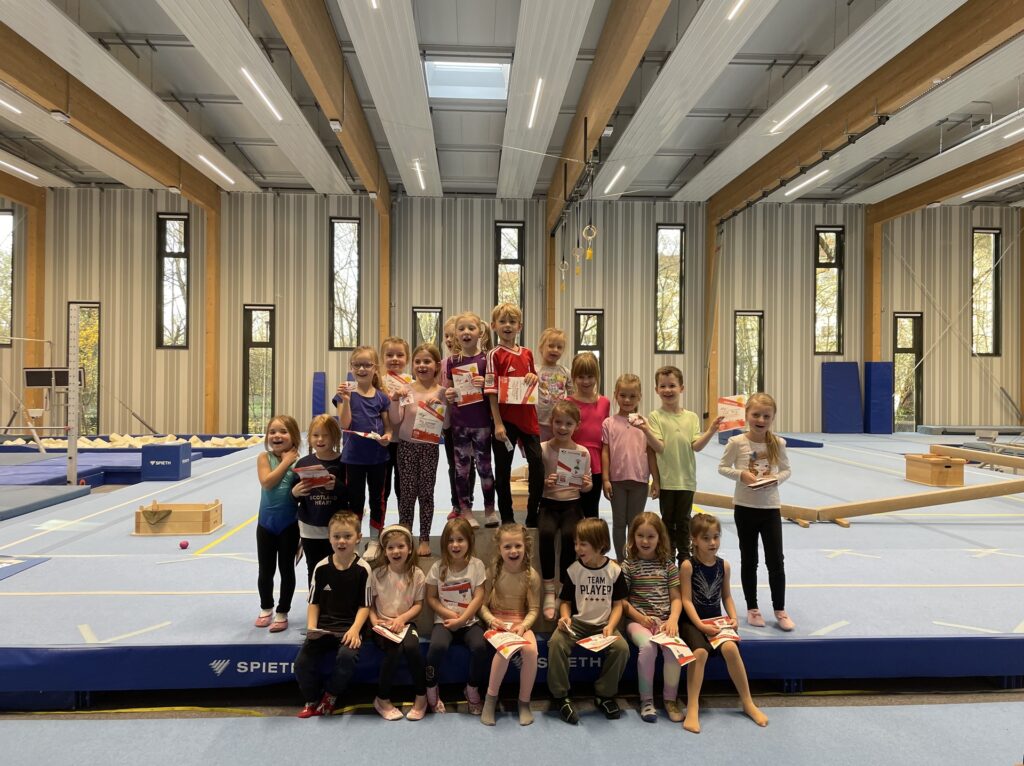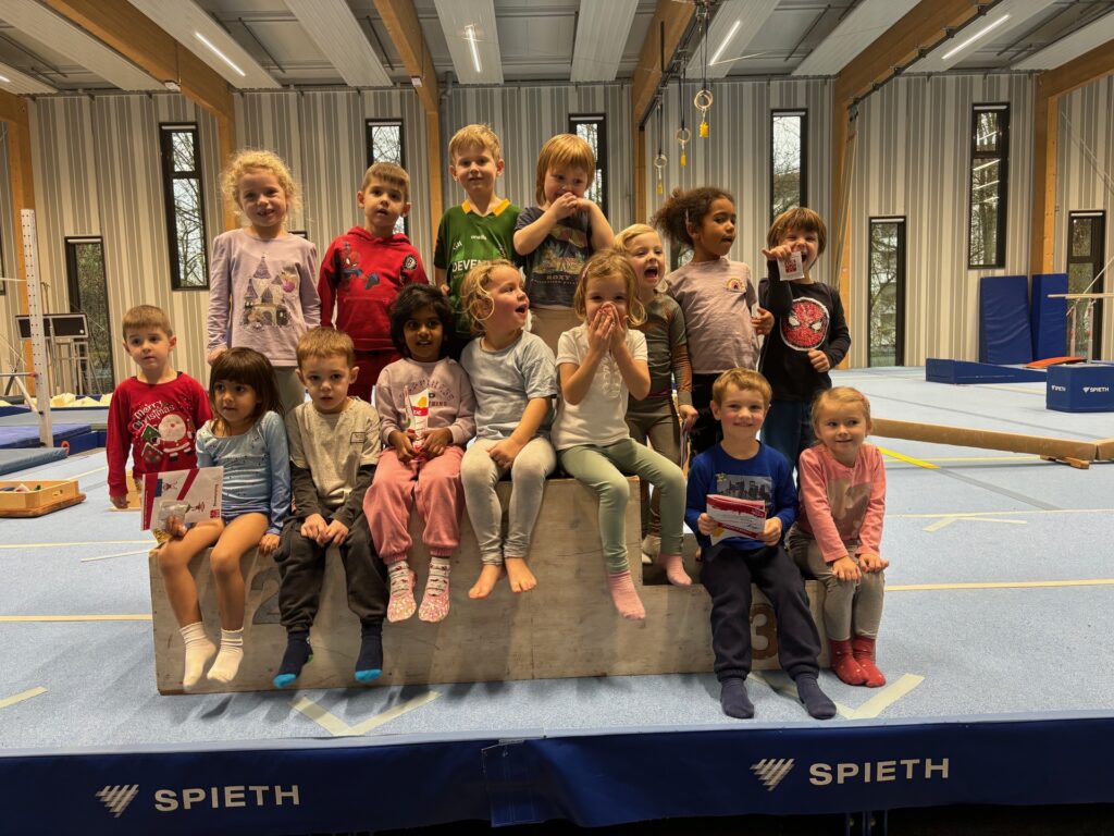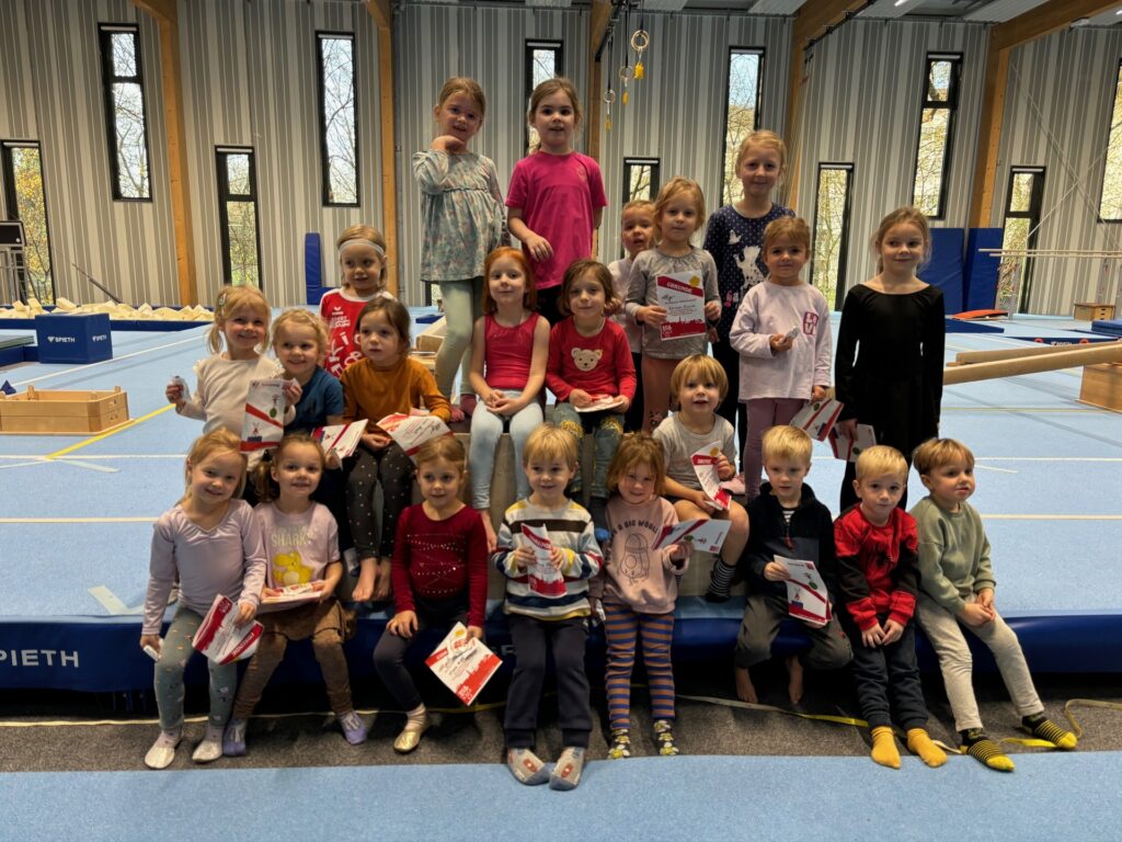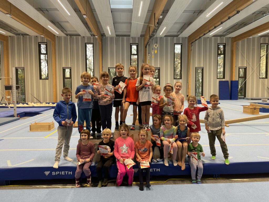 Was gibt es Schöneres als freudestrahlende Kinderaugen? Von diesen gaben es in der Gerätturnhalle diese Woche jede Menge. Schließlich haben über 130 Mädchen und Buben das Kinderturnabzeichen absolviert. Volle Konzentration war gefragt. Bei den insgesamt sieben Stationen wollte ja jede(r) sein Bestes geben. In den Kinderturnstunden trainieren die 3- und 4-jährigen sowie die 5- und 6-jährigen Turner fleißig an Spannung und Muskelkraft und das alles spielerisch und mit Freude. Beim Kinderturnabzeichen durften sie nun ihr Können unter Beweis stellen – sehr zum Stolz der begeisterten Mamas, Papas, Omas, Opas, Freunden uvm. auf den Zuschauerbänken. Am Ende erfolgte eine Ehrung auf dem Siegerpodest mit Überreichung des Kinderturnabzeichens, einer Urkunde und natürlich den TGL-Gummibärchen.